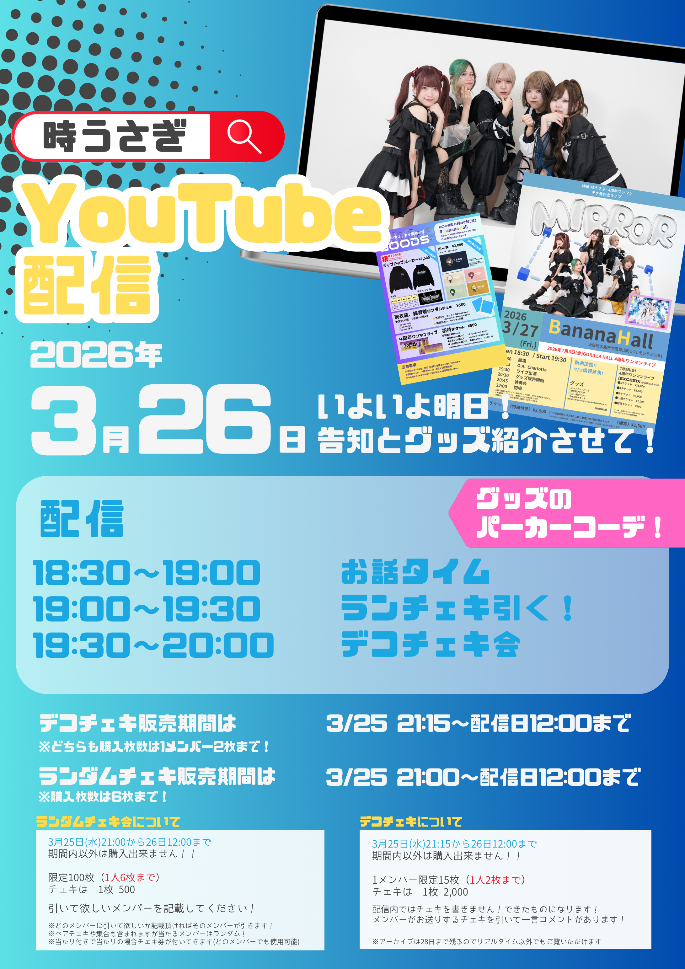 3/26に行われる(YouTubeにて)配信でのオンラインチェキ会のチェキ購入ページです